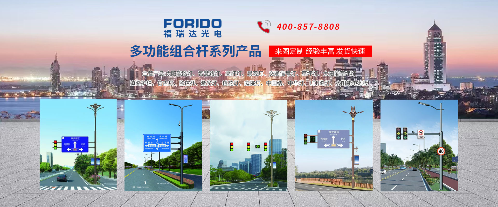 揚州福瑞達(dá)光電科技有限公司位于淮左名都?xì)v史文化名城、中國路燈制造基地?fù)P州市北郊菱塘工業(yè)園,公司占地面積76000平方米,注冊資金10518萬元,擁有高級技術(shù)嫻熟的員工280多人,擁有大型折彎機(jī)、激光切割、數(shù)控注塑機(jī)、壓鑄機(jī)、自動埋弧焊、氣焊、彩色粉末靜電噴塑等大型自動化設(shè)備,我公司是一家集設(shè)計、研發(fā)、生產(chǎn)、銷售、施工安裝服務(wù)為一體的戶外交通照明產(chǎn)品制造商,主要生產(chǎn)智慧路燈、太陽能路燈、LED路燈、高桿燈、景觀燈、交通信號燈、交通標(biāo)志牌、通信鐵塔、路跨鋼結(jié)構(gòu)、公交站臺、太陽能光伏組件、景點亮化、樓宇亮化工程的設(shè)計施工等。公司秉承開拓創(chuàng)新、銳意進(jìn)取、精誠服務(wù)的企業(yè)精神,堅持以“誠信為本、技術(shù)為先、服務(wù)是金”的合作理念,我們憑借先進(jìn)的制造工藝、優(yōu)質(zhì)的產(chǎn)品質(zhì)量、合理的市場價格和完善的售后服務(wù)贏得了廣闊的市場和客戶的信賴。  我公司已通過ISO9001質(zhì)量體系認(rèn)證、ISO14001環(huán)境管理體認(rèn)證,CQC產(chǎn)品認(rèn)證,中國節(jié)能產(chǎn)品認(rèn)證,通過“CCC”強(qiáng)制性產(chǎn)品認(rèn)證,具有市政總承包,照明,交安,設(shè)計等資質(zhì)···